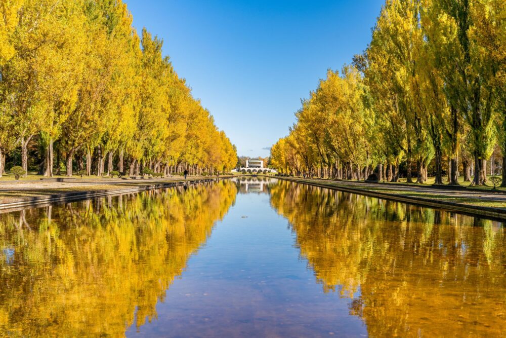 Enjoy a leisurely autumn stroll along the waterfront and tree-lined paths.